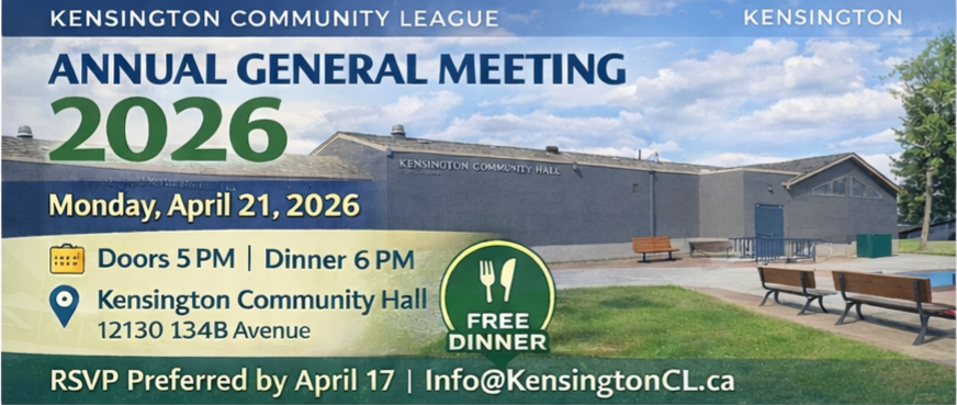 Meal Policy: The community dinner is complimentary for Community League Members only. Non-members can purchase a $20.00 CAD community league membership online when RSVPing (includes AGM meal, voting rights, and full membership benefits) or pay in person at the event. Important: If you purchase a membership in person at the event, we cannot guarantee a meal will be available as meal planning is based on RSVPs received by April 17th. Non-members can also attend without membership (free attendance, but meal not included).